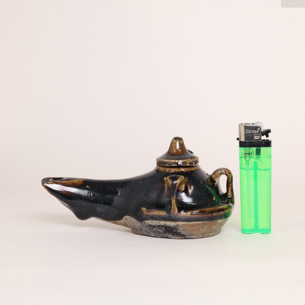 宋 千年黑釉陶制油灯-1