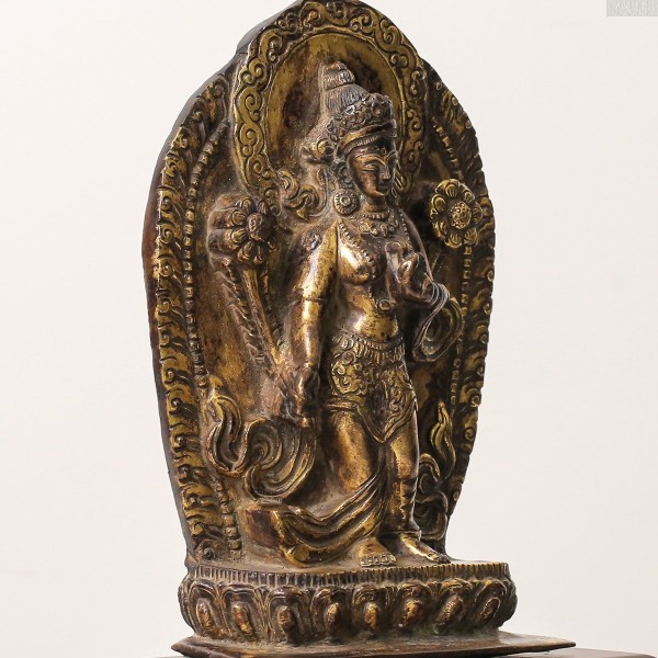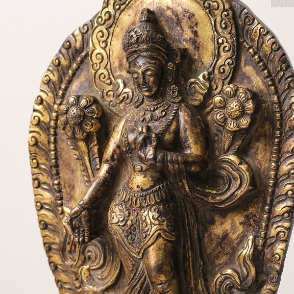 莲花手菩萨是观世音菩萨的化身之一,象征慈悲与智慧的结合。这尊莲花手菩萨像为18世纪造像,形象庄严,工艺精美,品相良好。