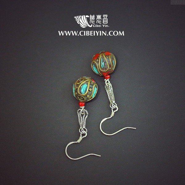 松石红宝珠耳环 28-17
