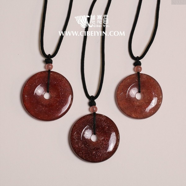 此款草莓晶平安扣,寓意桃花正旺、緣分順遂,象徵人緣提升、情感和合與美好關係的到來。草莓晶色澤柔潤溫暖,自古被視為有助於開啟心輪、滋養情感、增強個人親和力與吸引力的能量晶石。